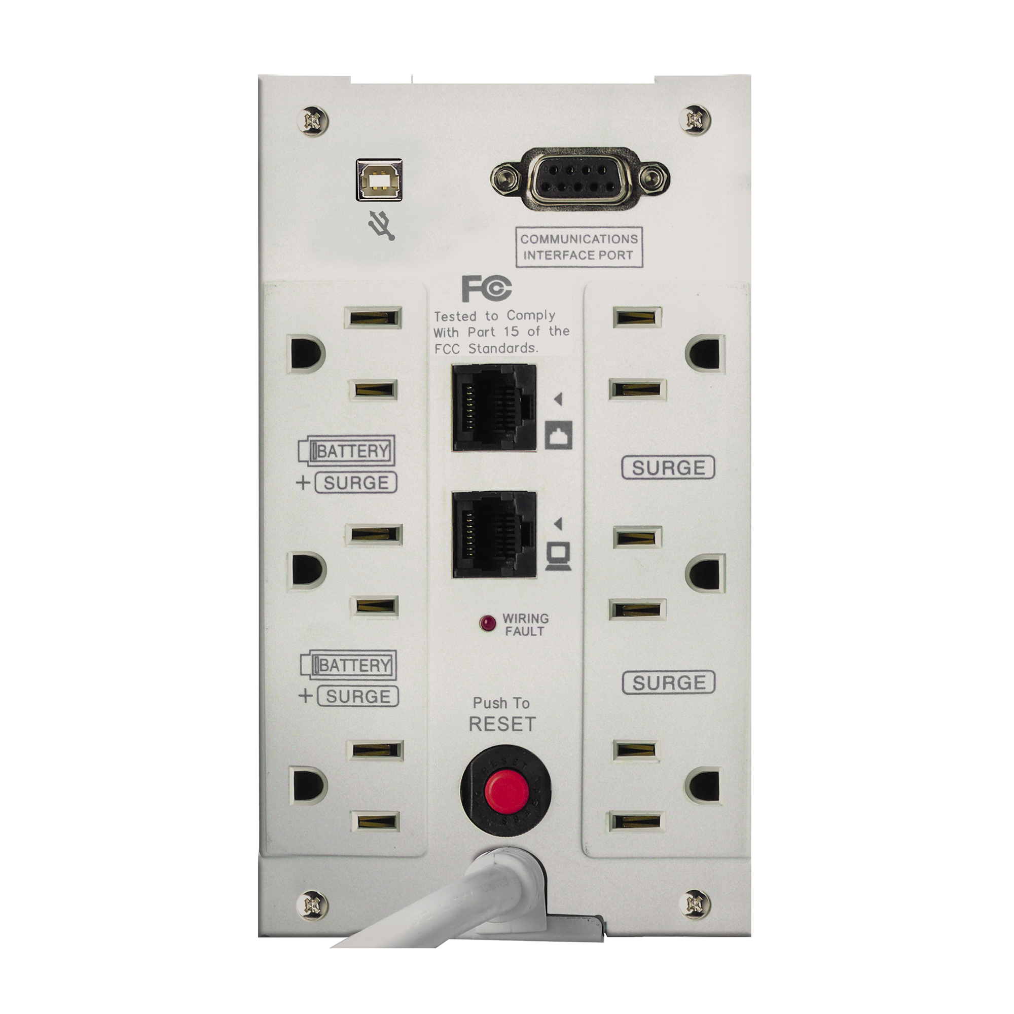 Ensures that when incoming power drops below or surges above safe voltage levels, the UPS switches to DC battery power and then inverts to AC power to run connected equipment. - Simulated Sine Wave Output
