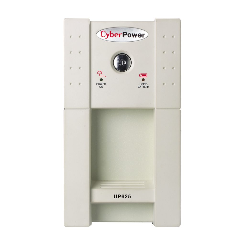 A tower UPS with standby topology, the CyberPower Standby UP625 provides battery backup (using simulated sine wave output) and surge protection for desktop computers, workstations, networking devices, and home entertainment systems. During power interruptions, the UP625 offers reliable power protection and battery backup. The UP625 comes with a three-year warranty and a $50,000 Connected Equipment Guarantee.
