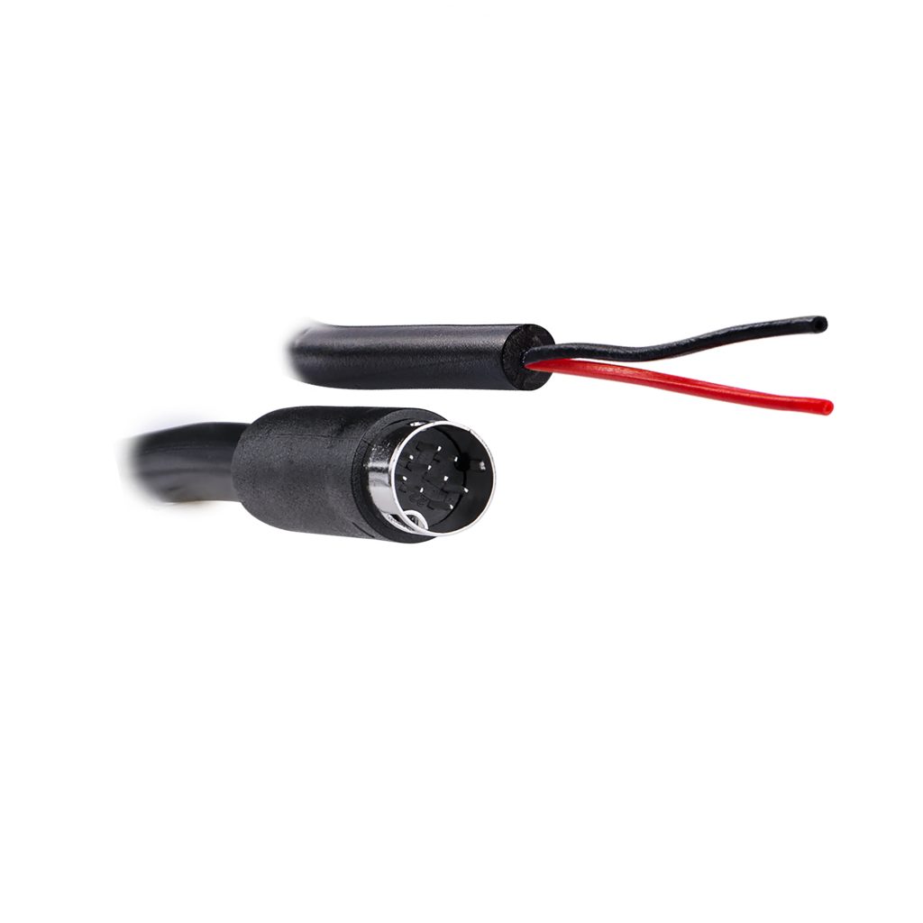 This cable is terminated with 9-pin male mini DIN connector at one end and is unterminated at the other. This pigtail assembly is designed to connect a battery backup system to a desktop ONT.