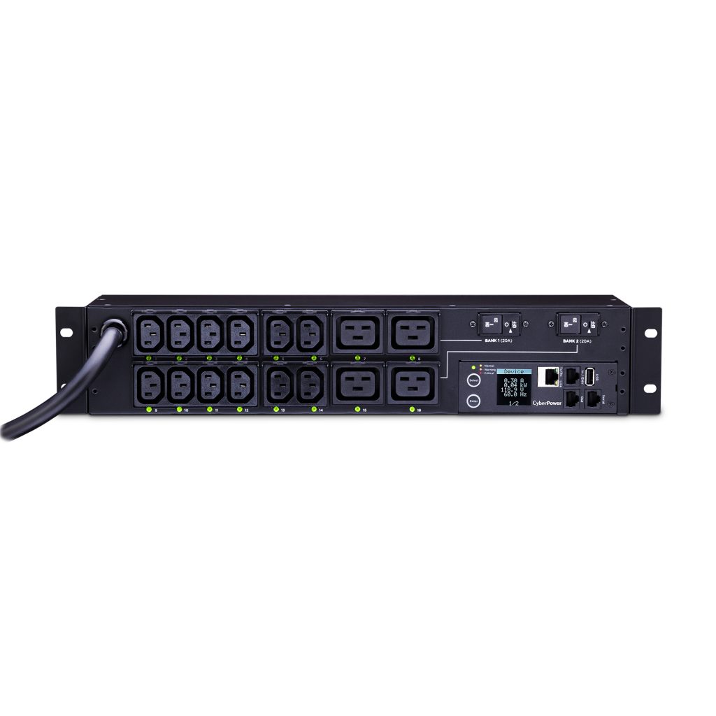 The CyberPower Switched Metered-by-Outlet PDUs combine network-grade power distribution with outlet-level monitoring and remote outlet control for advanced energy management. Monitor the power consumption of individual outlets in real-time over the network, or locally using the PDU’s interactive digital display. Outlets can be switched on and off remotely for unscheduled reboots, load shedding, controlled power-cycling and more. Mitigate risk with power event notifications via email and SMS text. Other features of the Switched MBO PDUs include, SNMP network interface, durable metal housing, and a versatile horizontal/vertical rack mount design. Downloadable firmware updates can be applied via USB that provide improvements to programs that run the PDU. Each Switched MBO PDU also includes a Three-Year Limited Warranty.