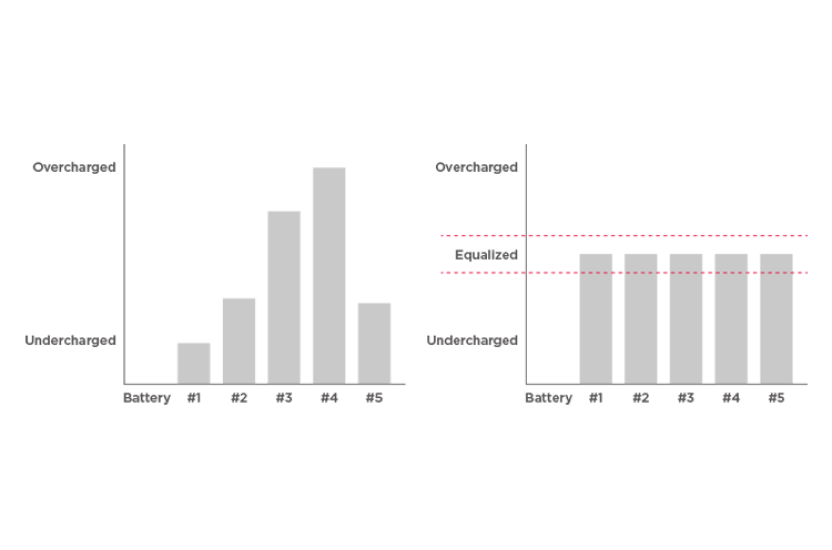 By performing the charge equalization of every battery in a string, the product is able to maximize the battery lifespan and optimize the battery performance.