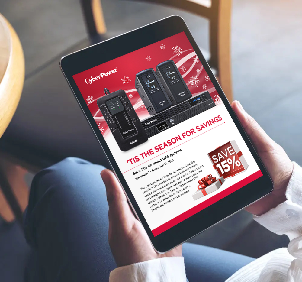 The holidays are no time for downtime. Save 15% on select UPS models to protect tech this holiday season from unexpected power events. Power surges and outages can cause damage to electronics and disrupt holiday fun. Rely on CyberPower UPS systems to keep the holidays merry, bright, connected, and protected.